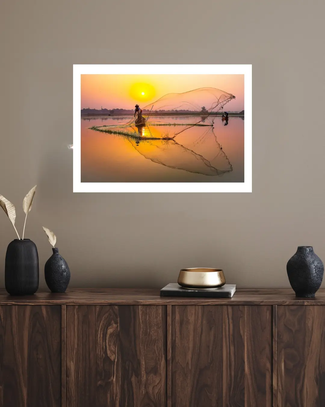 Mandalay’daki Taungthaman Gölü’nde gün doğumunda balık avlayan bir balıkçının zarif silüeti.